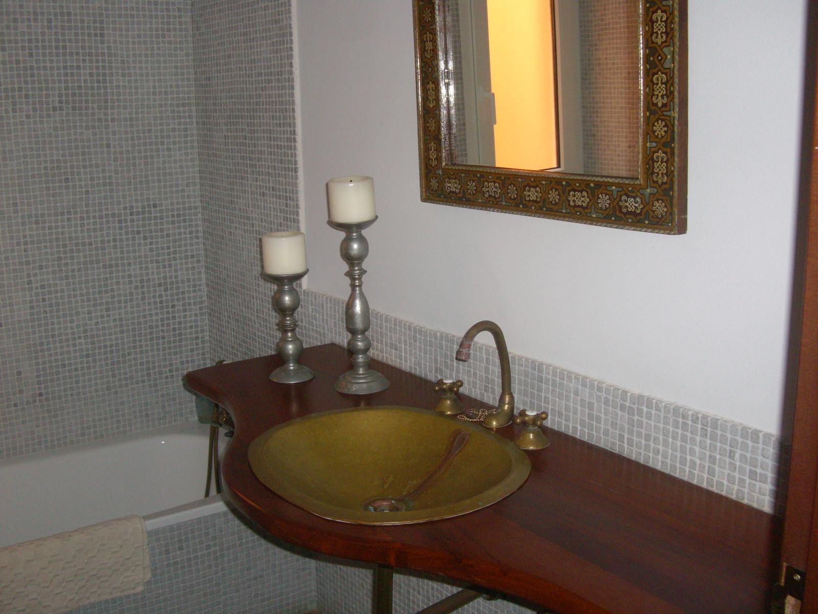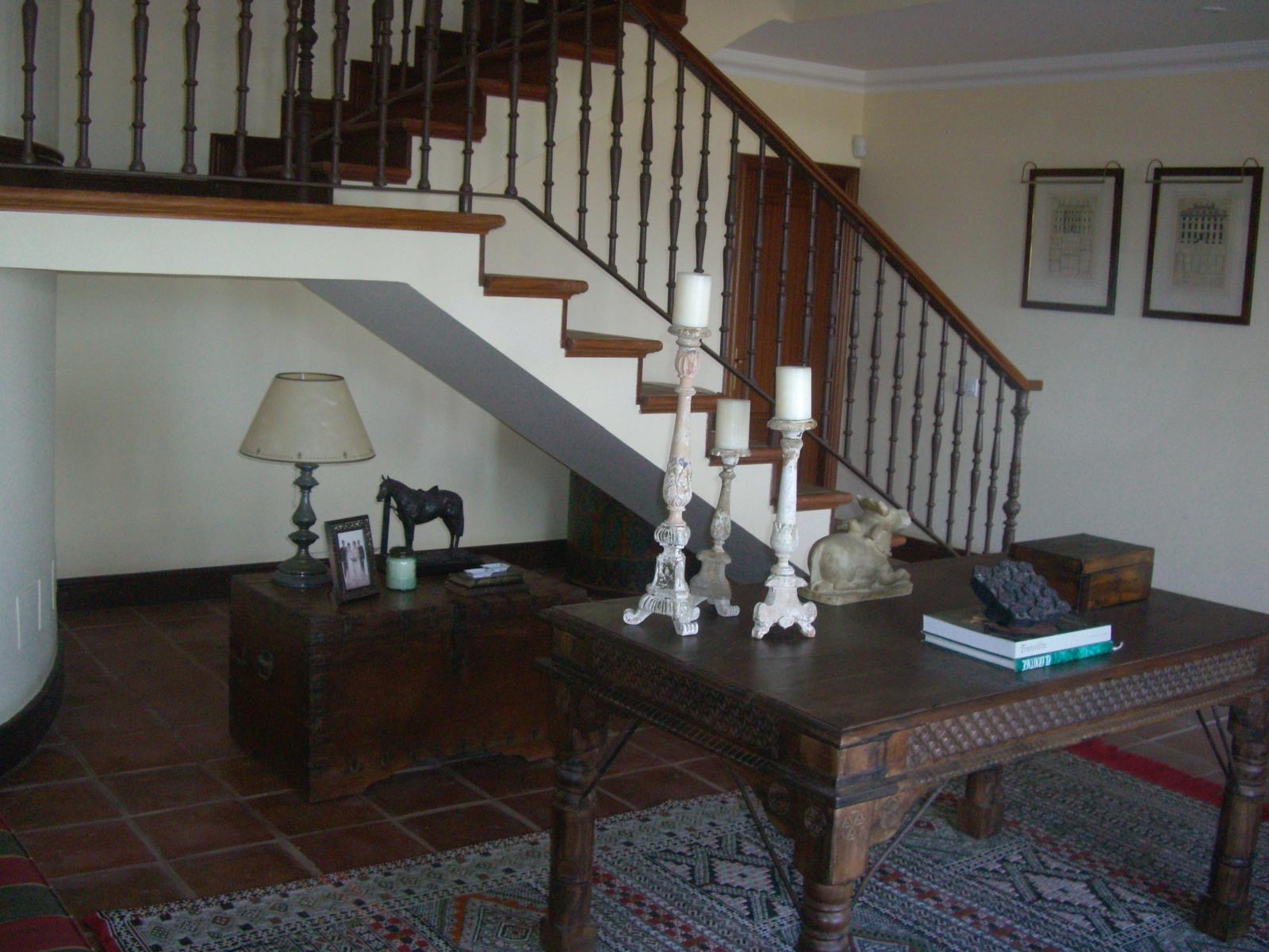 Acabados de alta calidad en toda la vivienda, incluyendo mármol travertino, maderas nobles y suelos de barro artesanal.