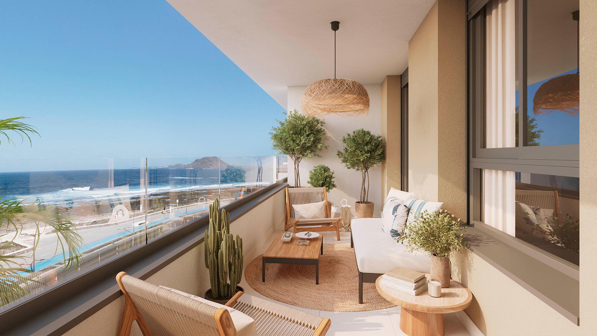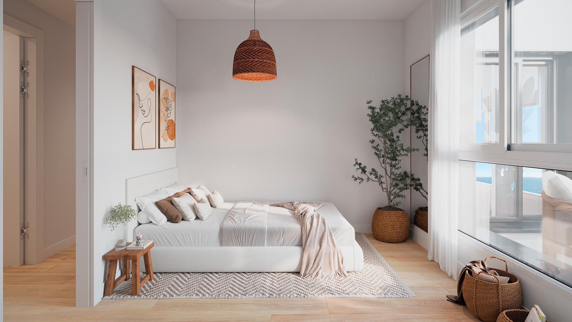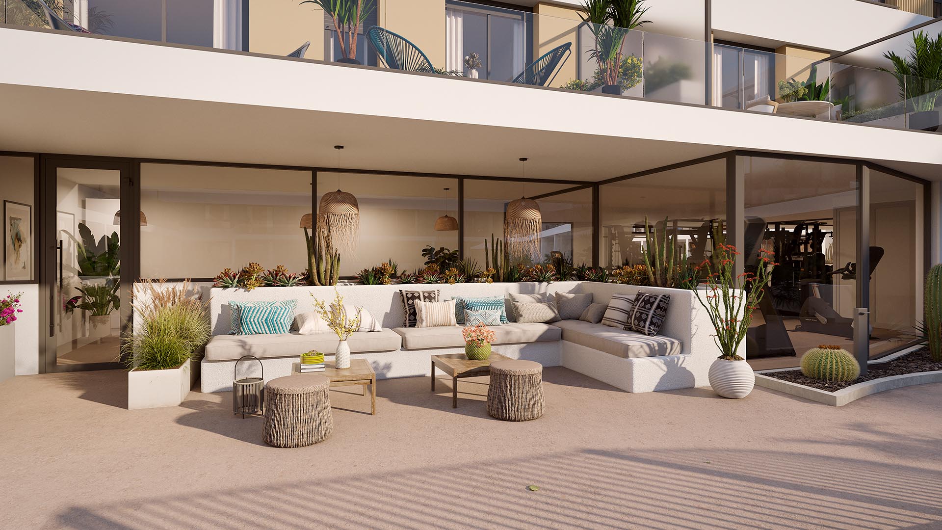 Cada vivienda dispone de amplios salones con cocina integrada, terrazas luminosas, jardines privados o áticos con vistas infinitas al océano, e incluye