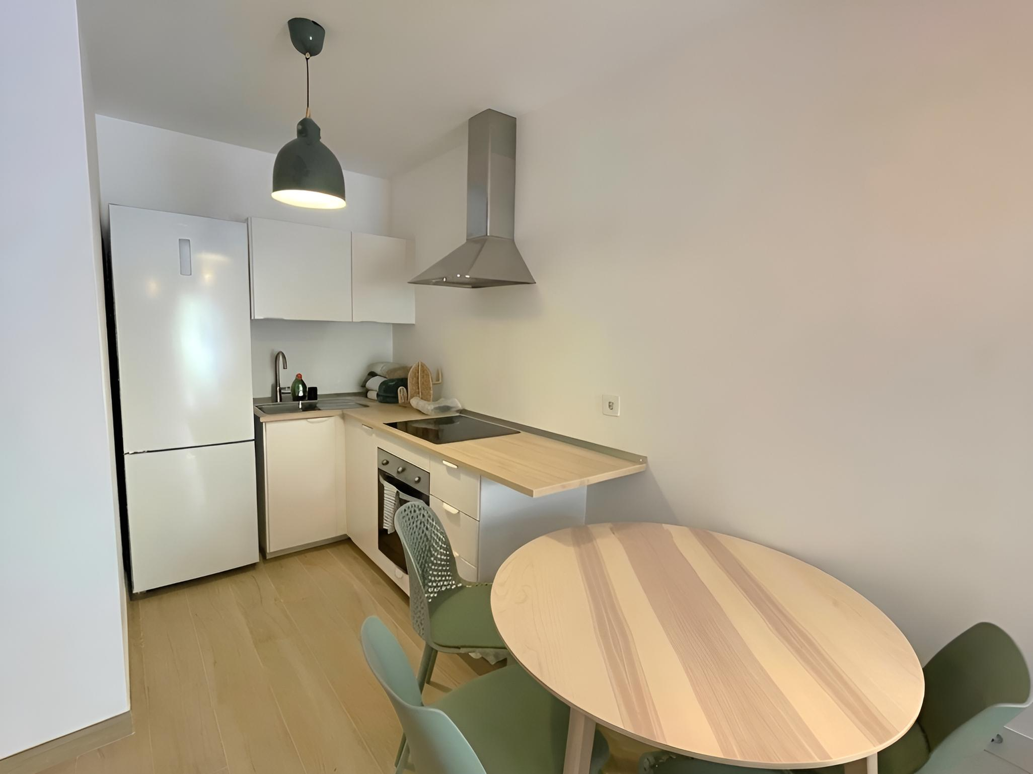 - Planta baja (36,59 m²): pequeña terraza en la entrada, salón-cocina integrado, baño completo y escalera de acceso a la planta superior