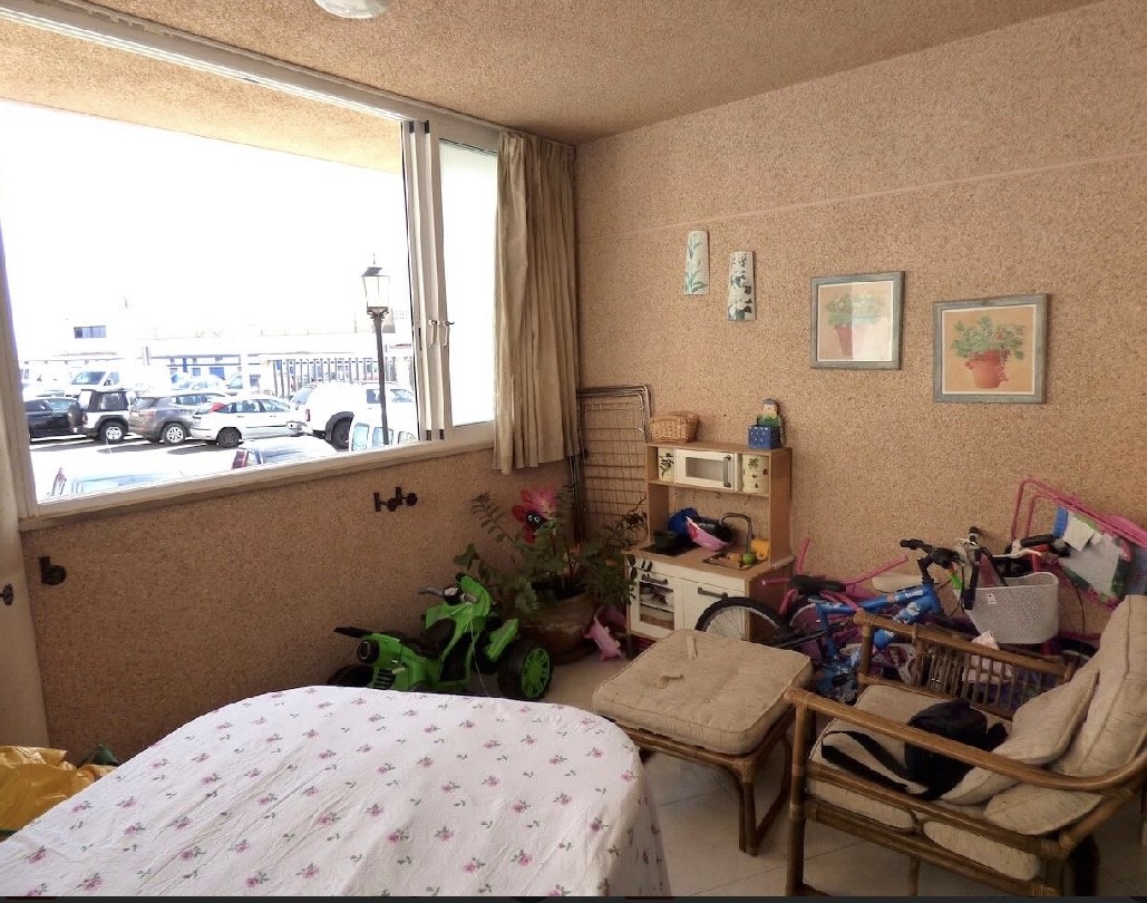 En venta piso situado en el Edificio Bitácora, en Corralejo. Dispone de salón-comedor-cocina, dos dormitorios, un baño, terraza con vistas al Puerto de Corralejo, trastero en el sótano y plaza de garaje.