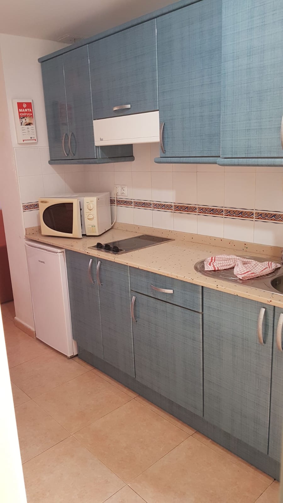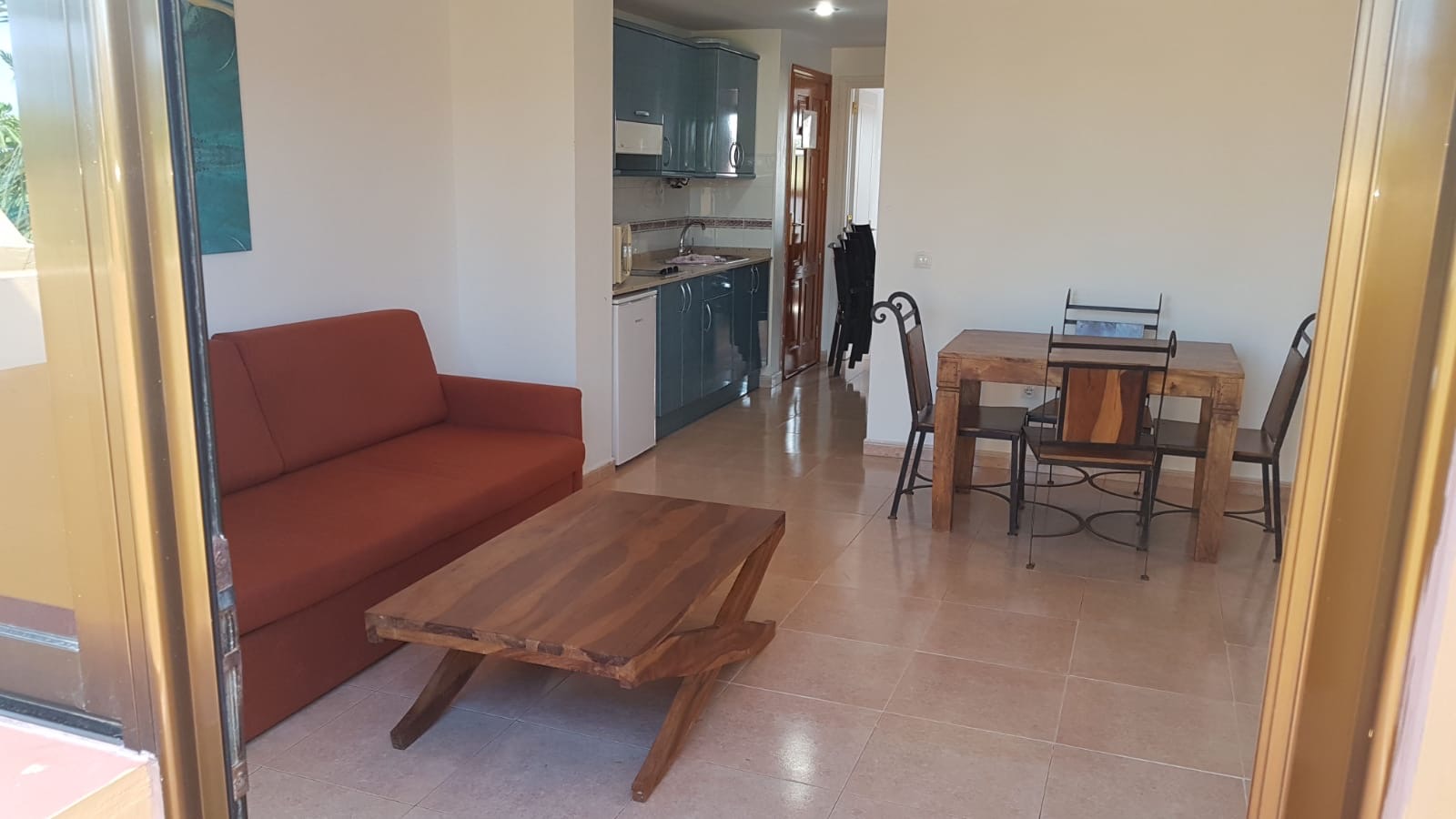 Este inmueble de 50m2, concretamente el nº 125A del complejo se localiza en una planta alta y se compone de 1 dormitorio, 1 baño, salón - comedor, cocina y una terraza de 9m2. Le rodean zonas ajardinadas comunitarias y cuenta incluso con varias piscinas comunes de agua salada, parking gratuito para propietarios y usuarios del complejo e infinidad de actividades y servicios lúdicos relacionados con el deporte y la animación. Se vende parcialmente amueblado y el pago de la comunidad asciende a 125€/ mes e incluyen los gastos de agua y luz.