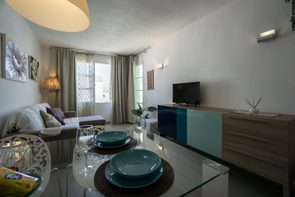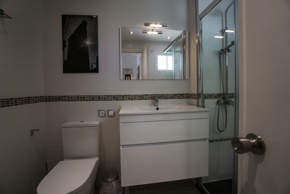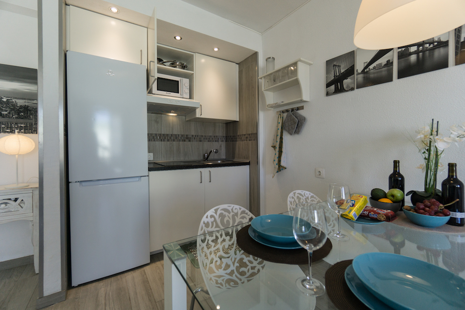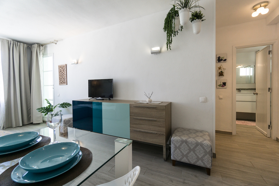 1 dormitorio con armario empotrados, 1 baño con ducha, cocina abierta y salón