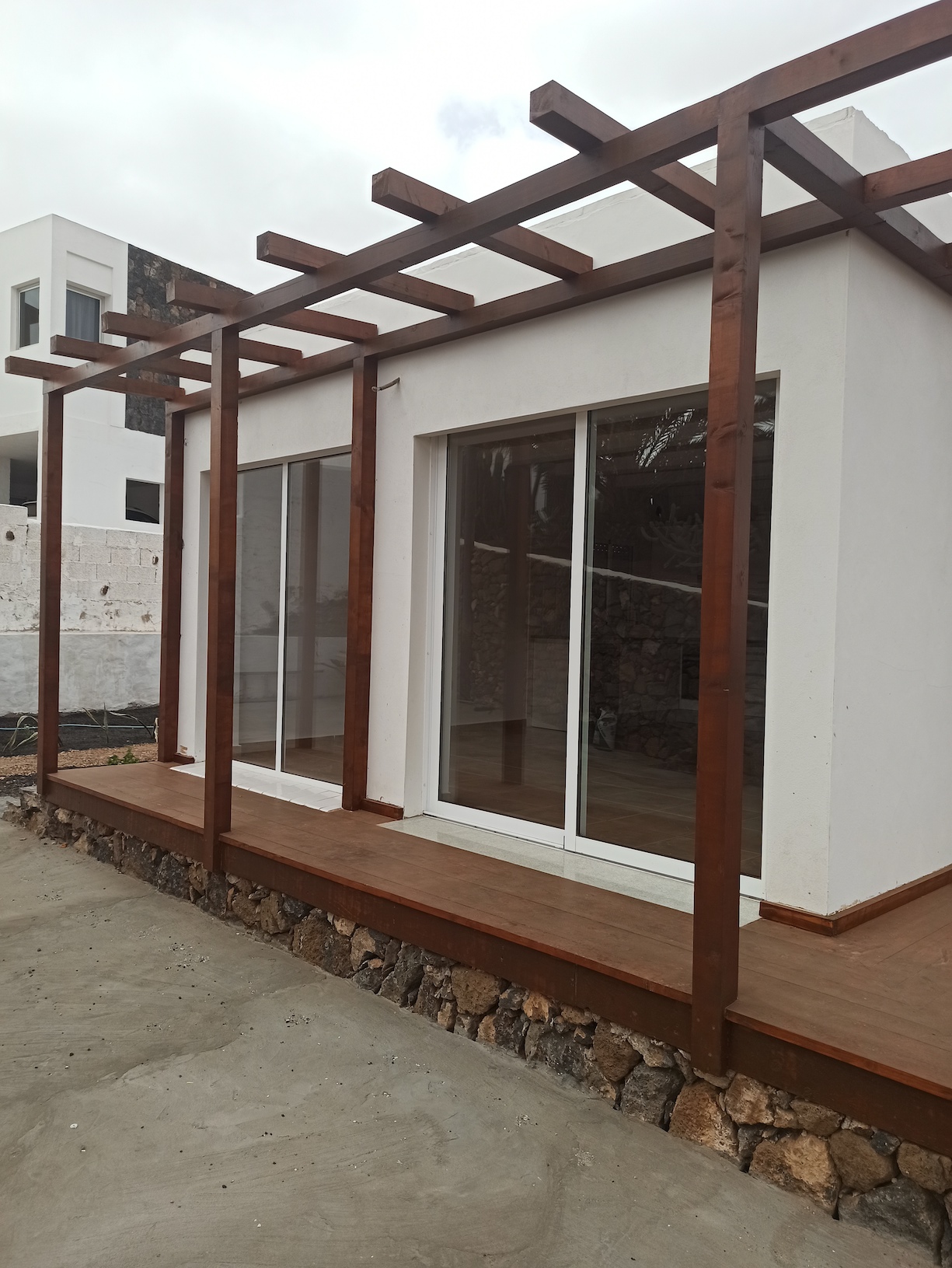 cuarto de lavadora, habitación tipo almacén y terraza con pérgola alrededor. Le