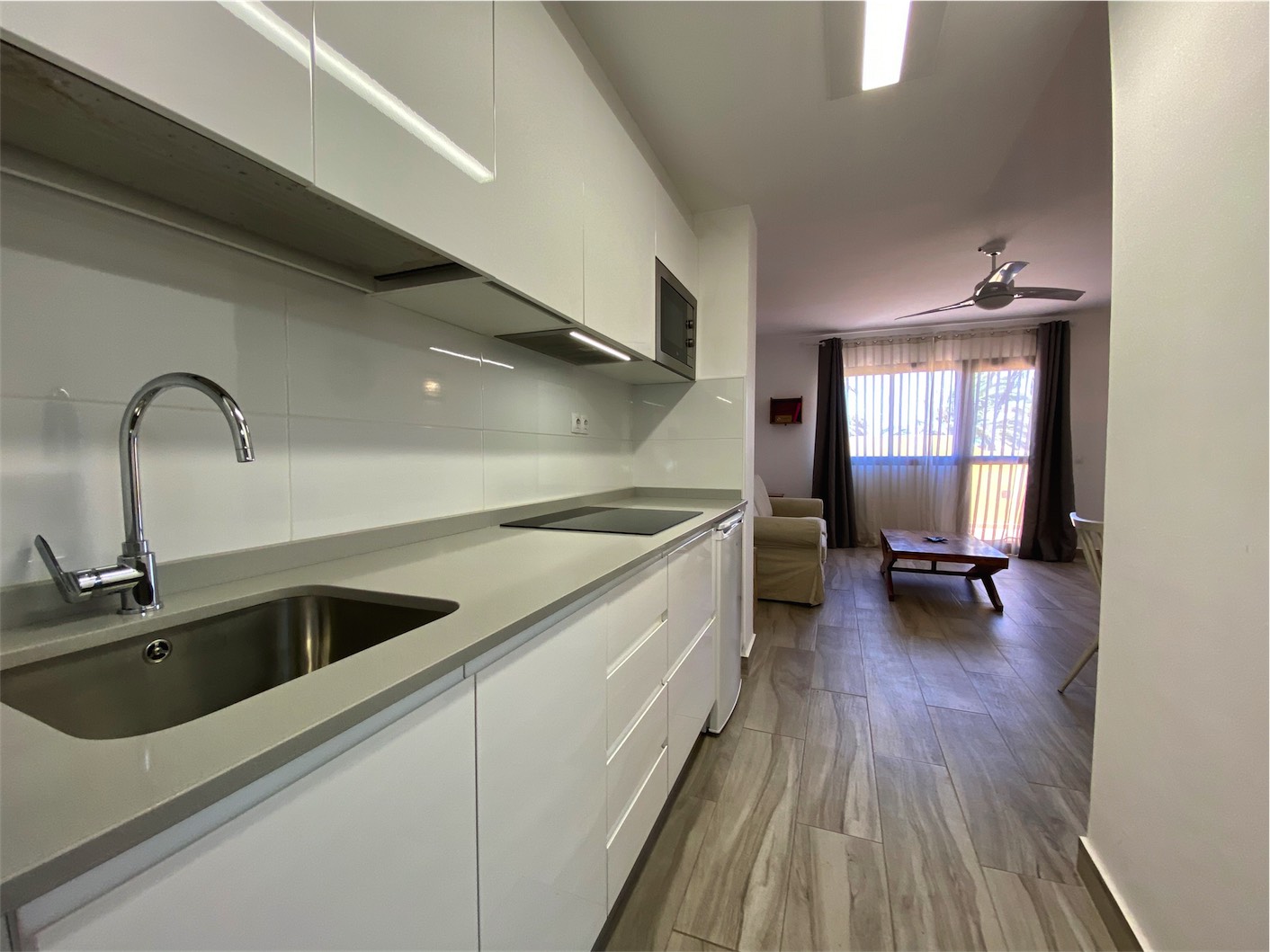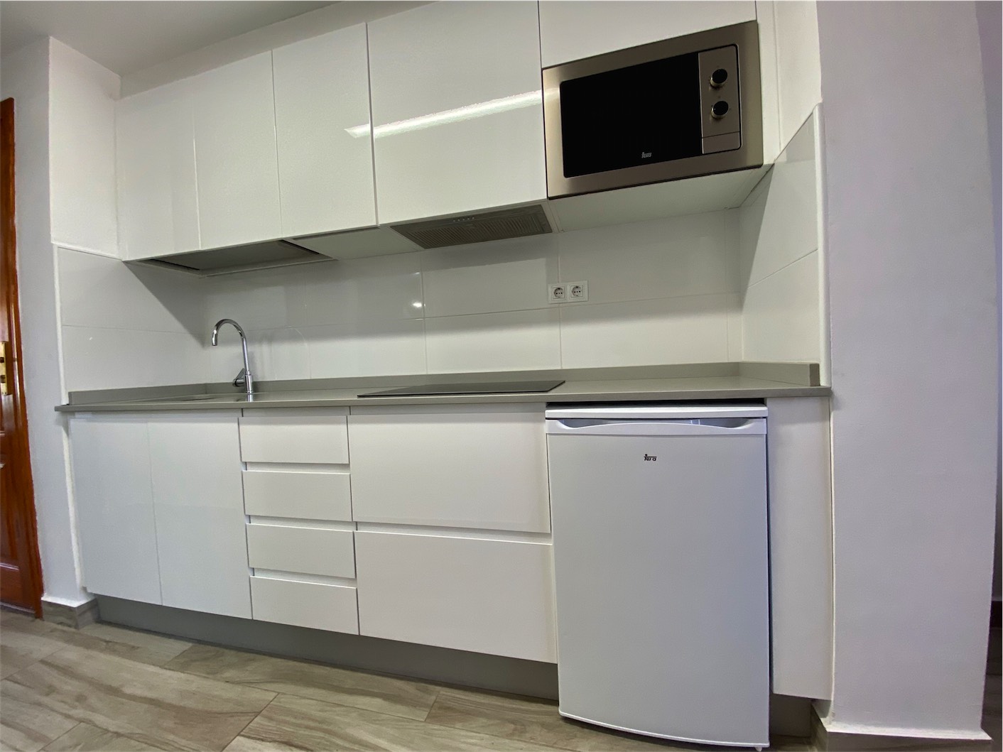y cama doble, 1 baño completo con plato de ducha y lavabo doble, cocina totalmente equipada y salón – comedor con acceso directo a una terraza de 10m2. Se vende totalmente amueblada y la cuota mensual de comunidad incluye los gastos de agua y luz. Le