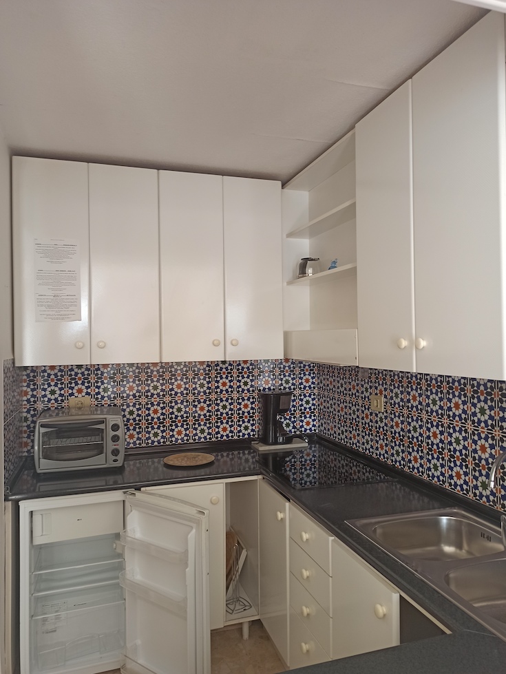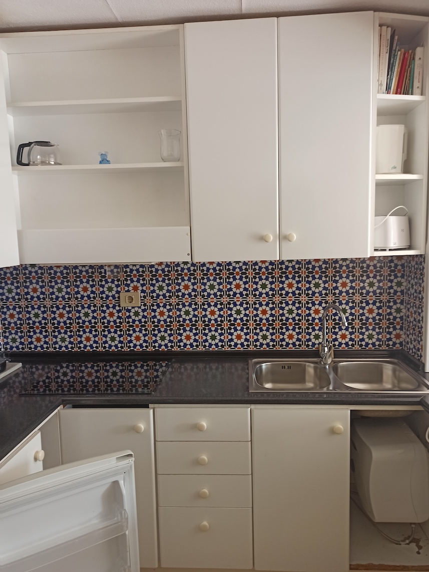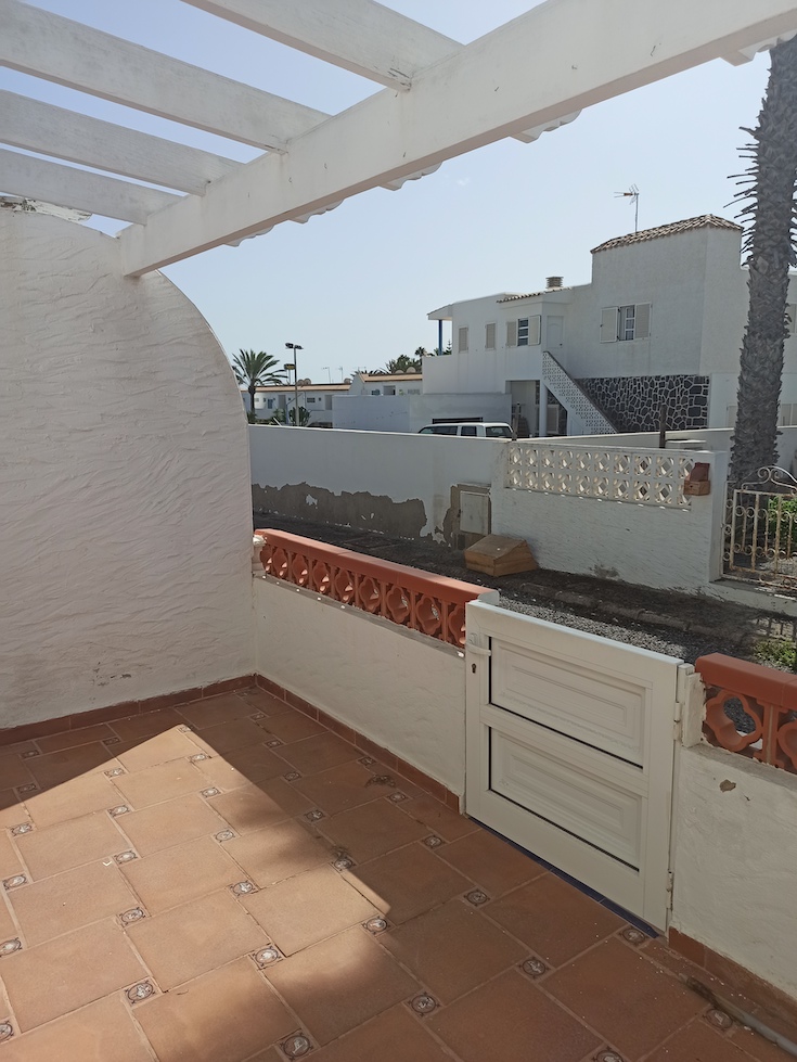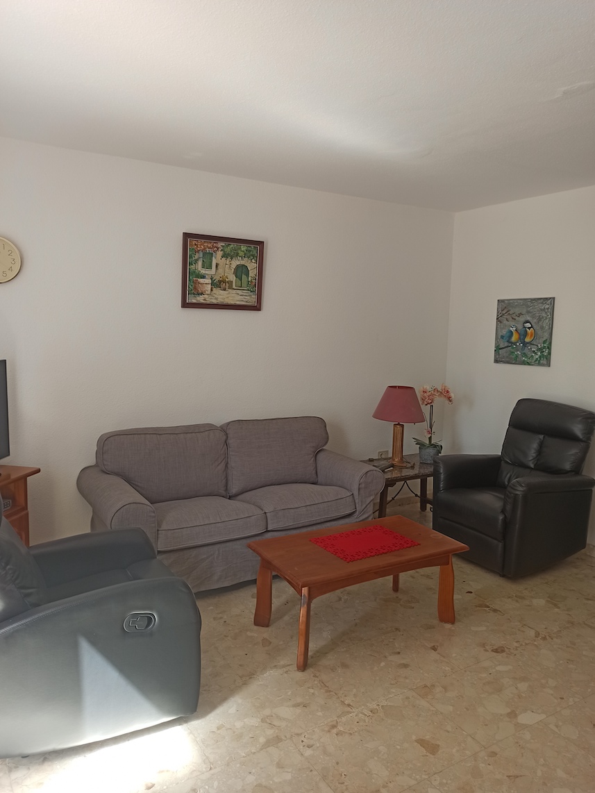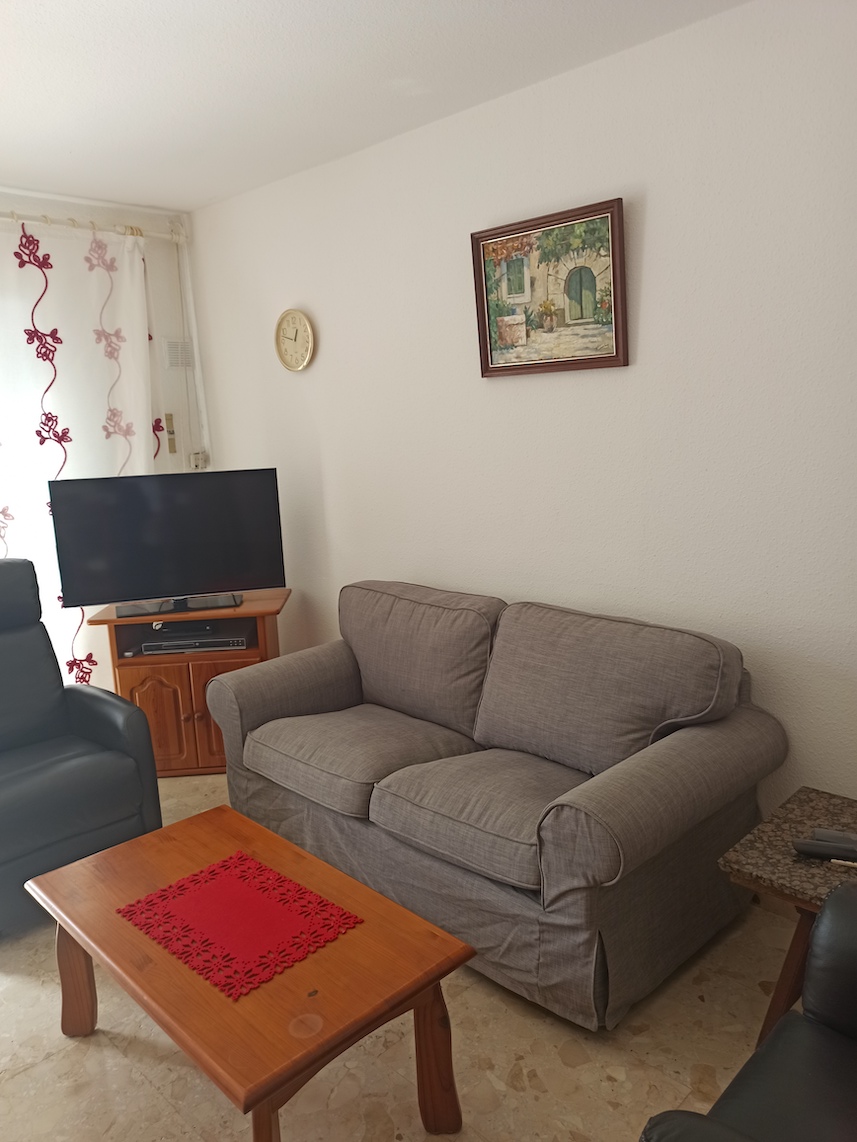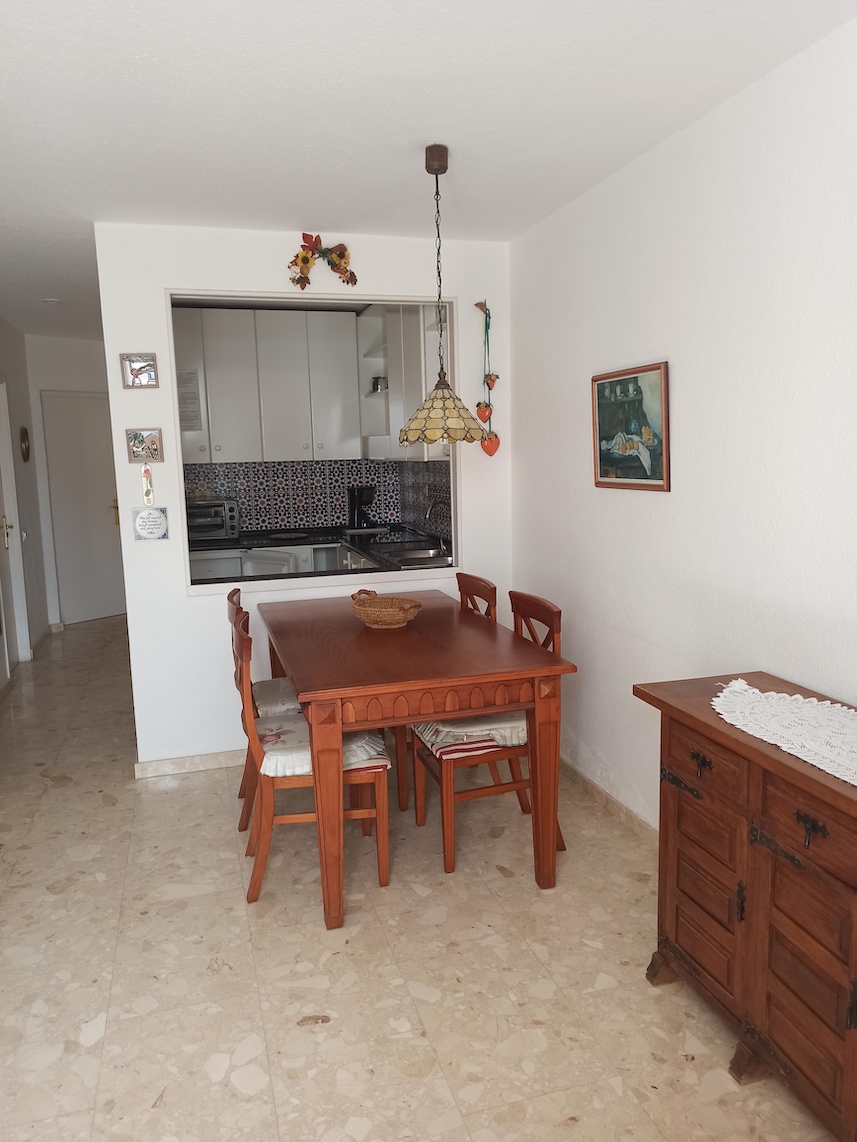 Esta propiedad cuenta con una superficie total de 75m2 aproximadamente en planta baja y se distribuye en 2 dormitorios, 1 baño, cocina, salón-comedor y terraza con vista parcial al mar. Se paga una cuota de comunidad de alrededor de 30€ mensuales y es posible obtener licencia de alquiler vacacional para esta vivienda.