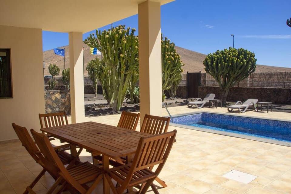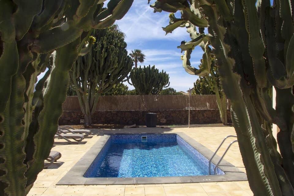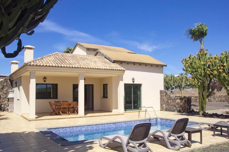 Sitio histórico por su riqueza monumental y cultural típica canaria, alberga lugares de interés local como la Casa de los Coroneles, el Centro de Arte Casa Mané (galería con exposiciones de obras contemporáneas de artistas relacionados con las Islas Canarias), el Museo del Grano La Cilla, así como el Mercado de las Tradiciones que tiene lugar todos los martes y jueves de cada mes. Cuenta igualmente con el Ayuntamiento municipal que se erige frente a la misma plaza donde se emplaza la Iglesia de Nuestra Señora de La Candelaria, de gran valor arquitectónico y estilístico. El área en el que está ubicado el inmueble es tranquila, sin multitudes y con poco o ningún tráfico. Una verdadera zona residencial en un entorno natural único y perfectamente conectada a través de las carreteras principales FV-101 y FV- 102 que unen La Oliva con otras localidades como El Cotillo, Corralejo, Lajares y Puerto del Rosario (capital de la isla) todas ellas a un máximo de 15 minutos de trayecto. La dimensión total de la parcela es de 1.017m2, mientras que la superficie construida abarca 145m2 y se sitúa estratégicamente en las intermediaciones de la FV-101. Consta de 3 dormitorios, 3 baños, salón – comedor, cocina, y distribuidor en estancias están distribuidas en dos plantas. Cuenta igualmente con una magnífica terraza con piscina privada.