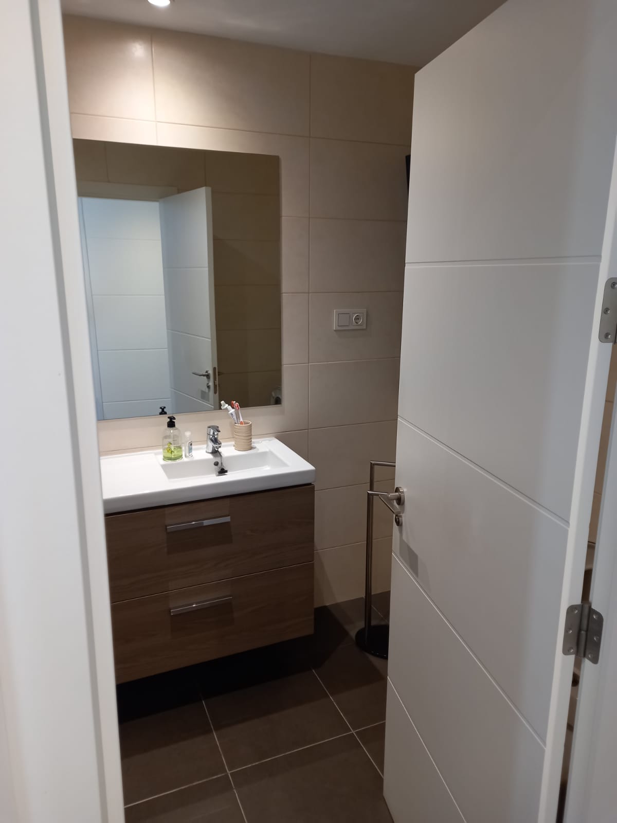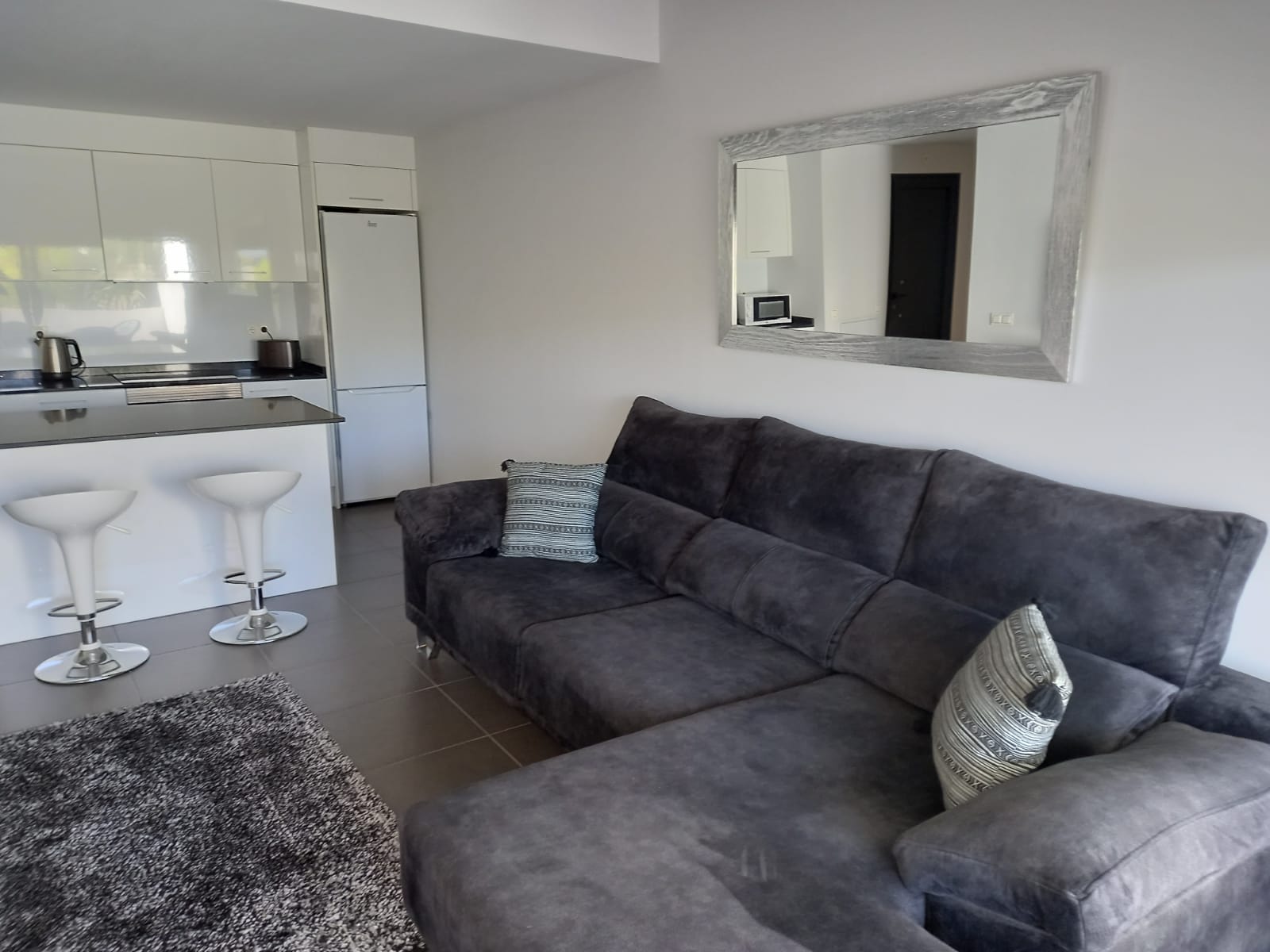 Consta de salón-cocina, 1 baño, 1 dormitorio y una amplia terraza de 20m2 con vistas a la piscina comunitaria y jardines exteriores.Plazas de aparcamientos libres.