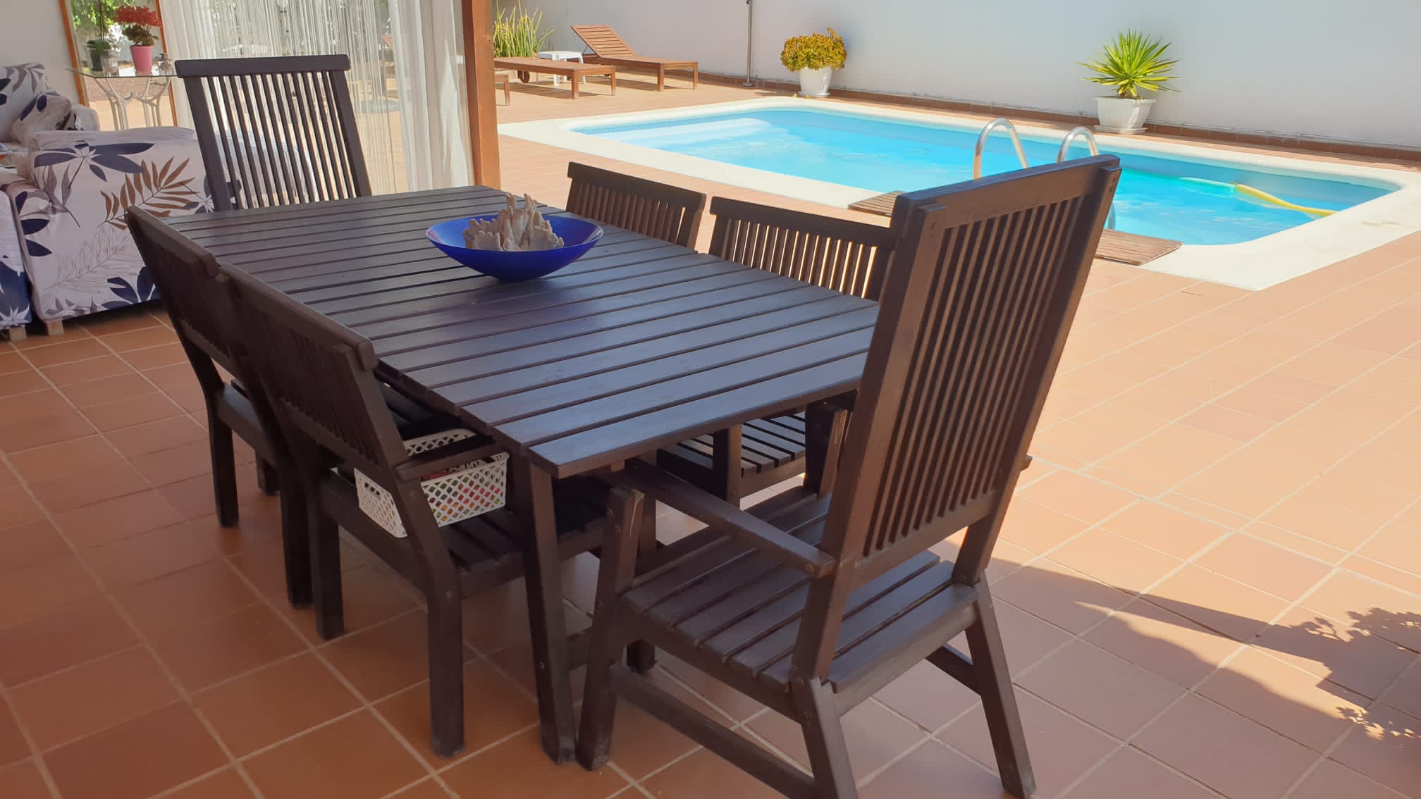 La vivienda se distribuye en 4 dormitorios, 3 baños con una superficie construida de 143m2, terraza, balcón, aire acondicionado, piscina, piscina y garaje cubierto. Se vende amueblada