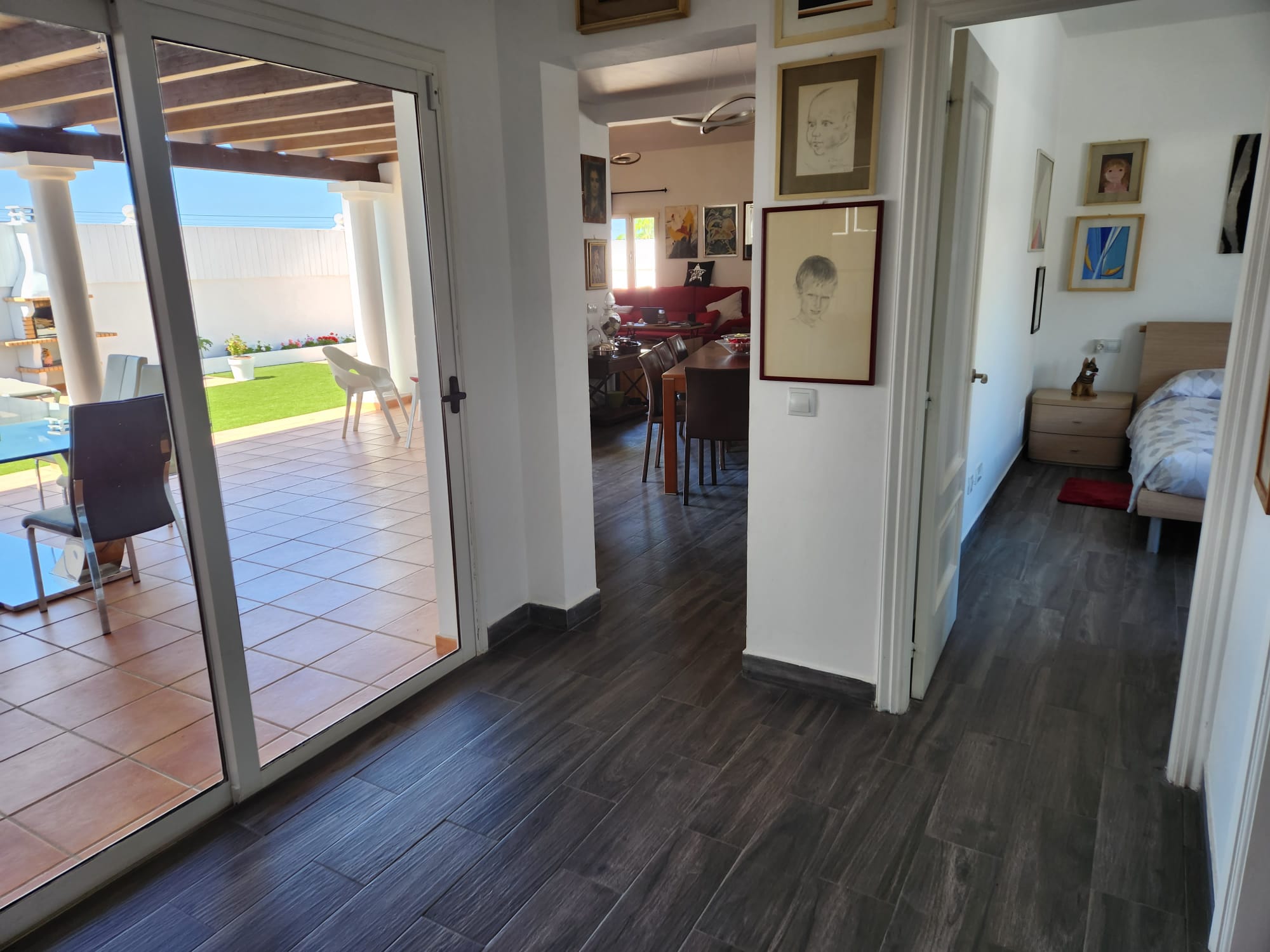 Este inmueble consta de 370m2 de terreno, de los cuales 113m2 construidos. Ésta se compone de 3 dormitorios y 2 baños, salón, comedor y cocina (con pequeño trastero), todas estas estancias caracterizadas por su gran amplitud y bondades lumínicas. Por otro lado, incluye una maravillosa terraza cubierta por una pérgola de madera que cuenta con acceso directo desde la habitación principal y el salón. Cuenta con piscina privad y climatizada, zona de barbacoa y jardines perfectamente cuidados.