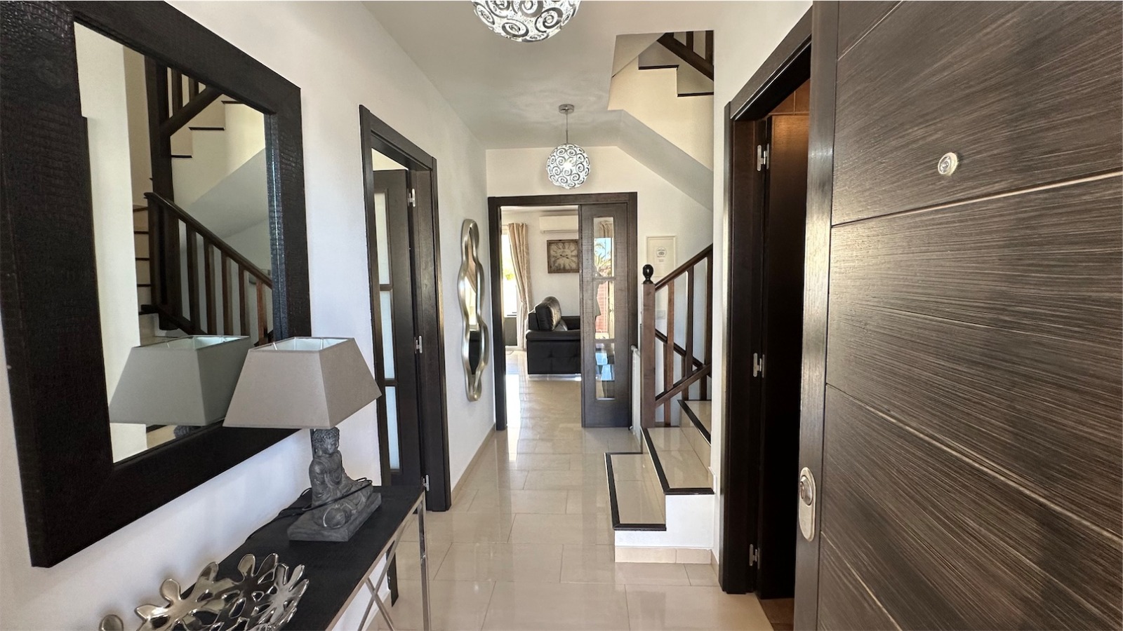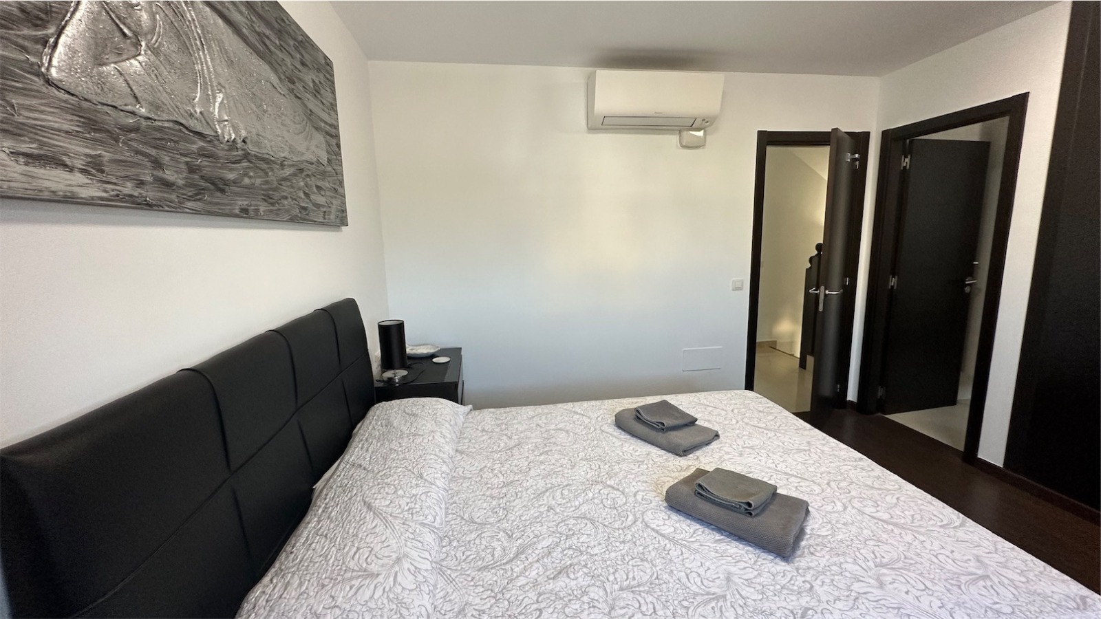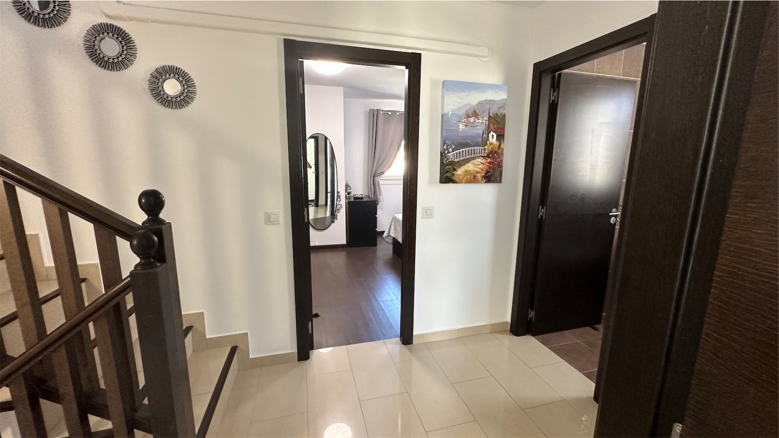 En la primera planta la habitación principal con baño en-suite, otros dos dormitorios con balcones (todas las habitaciones tienen armarios empotrados) y cuarto de baño.
