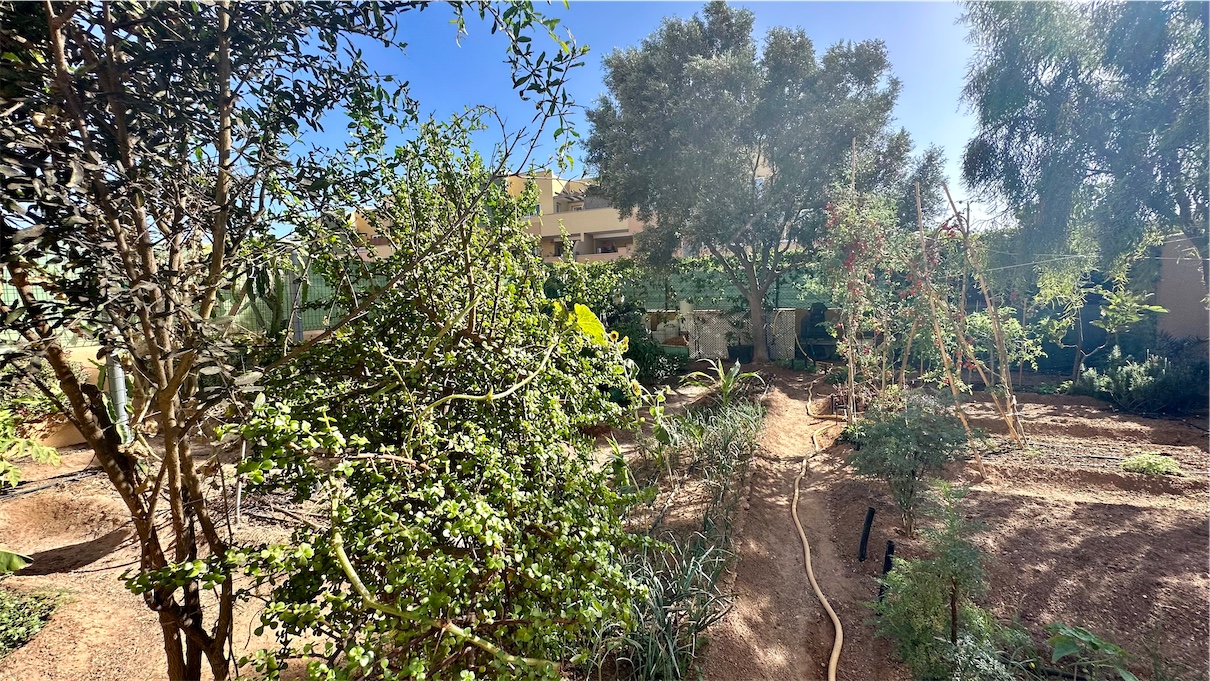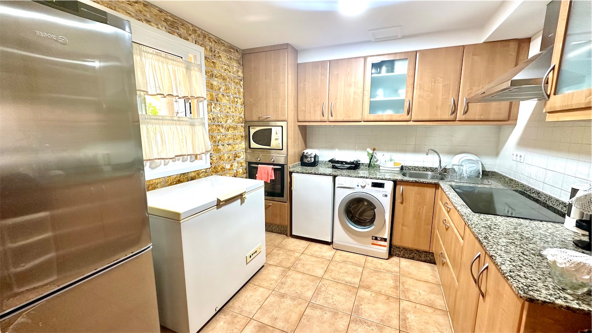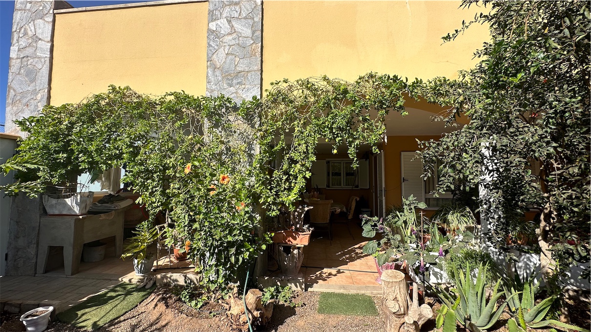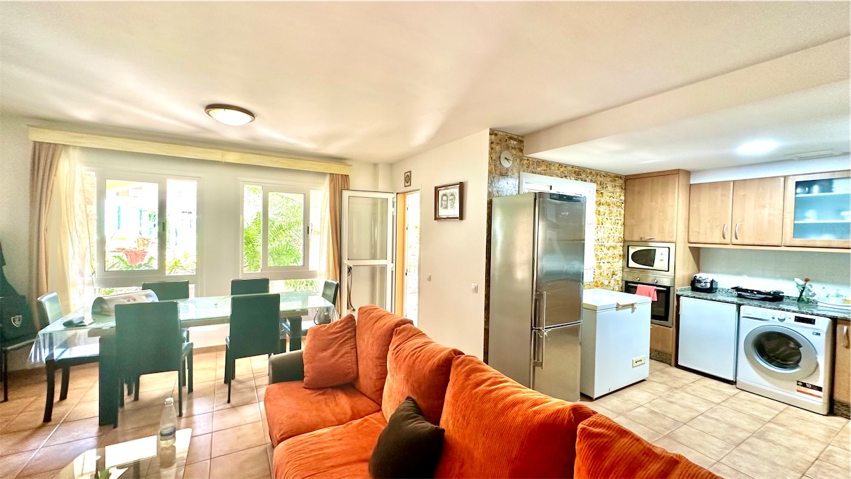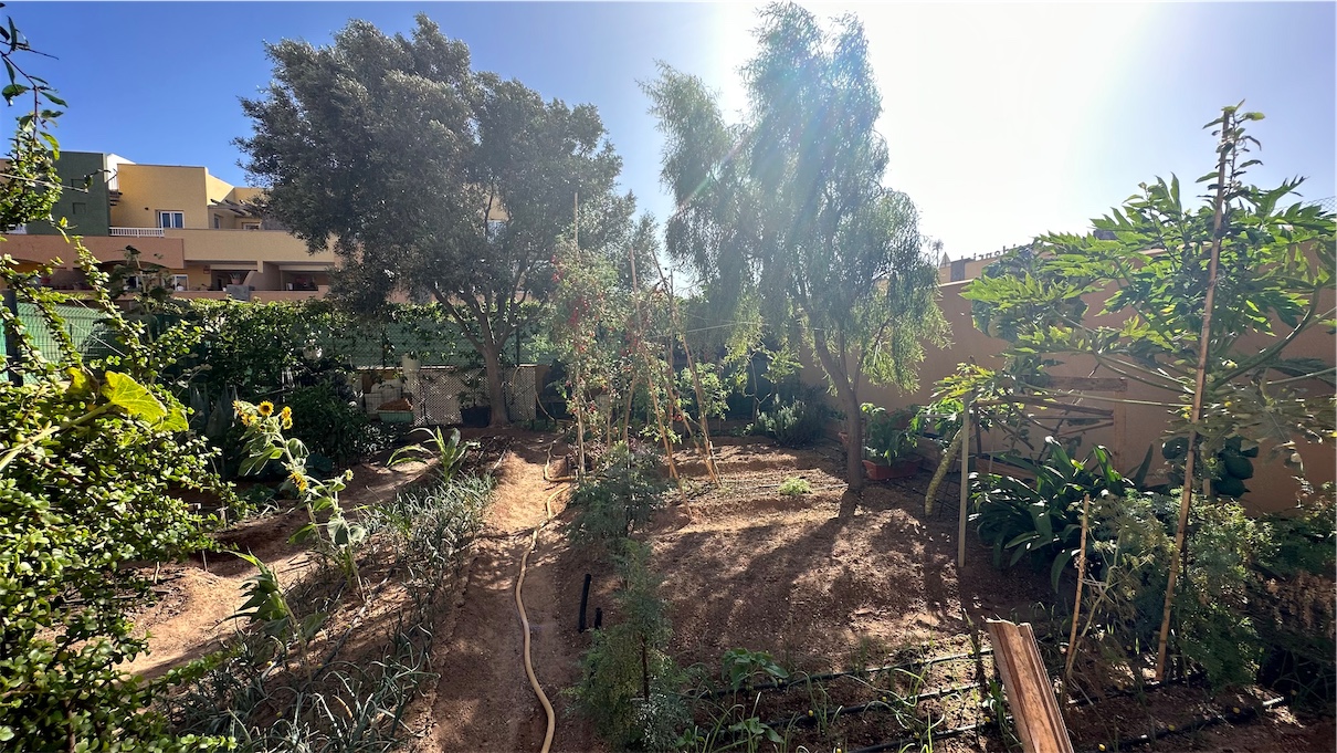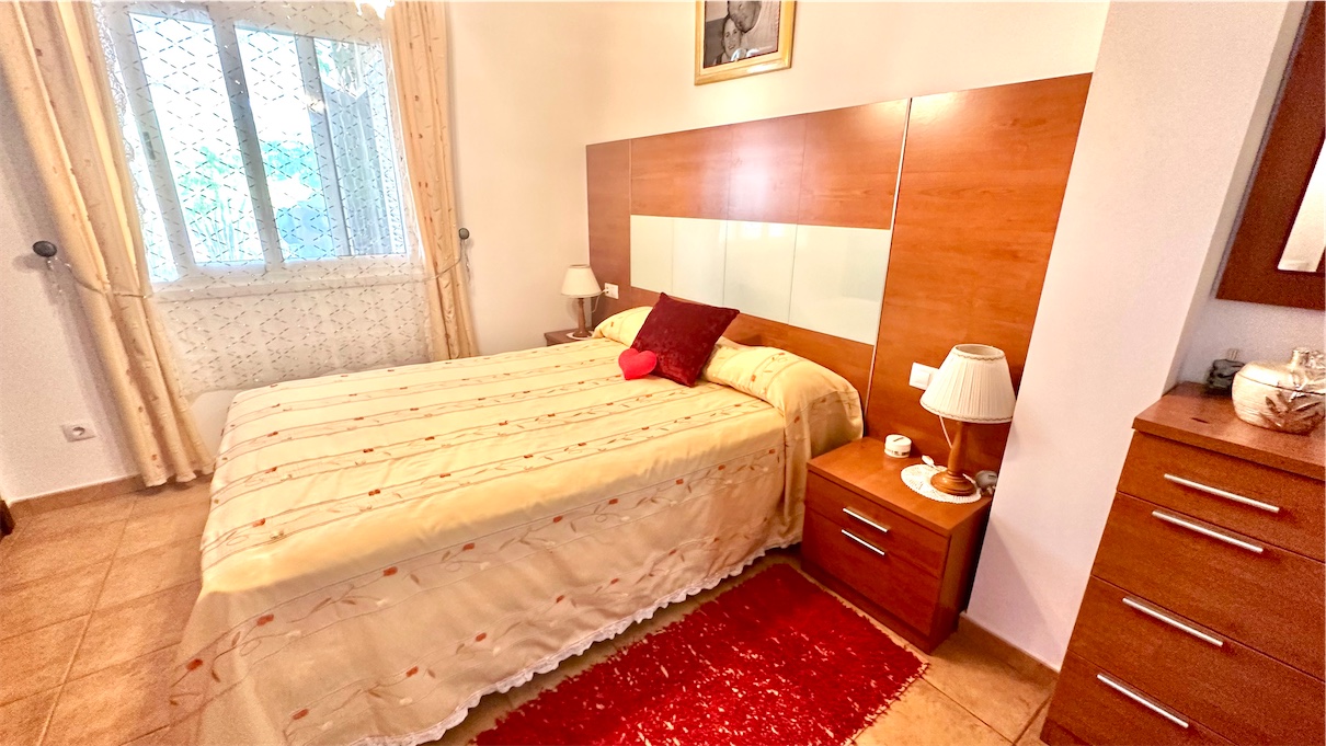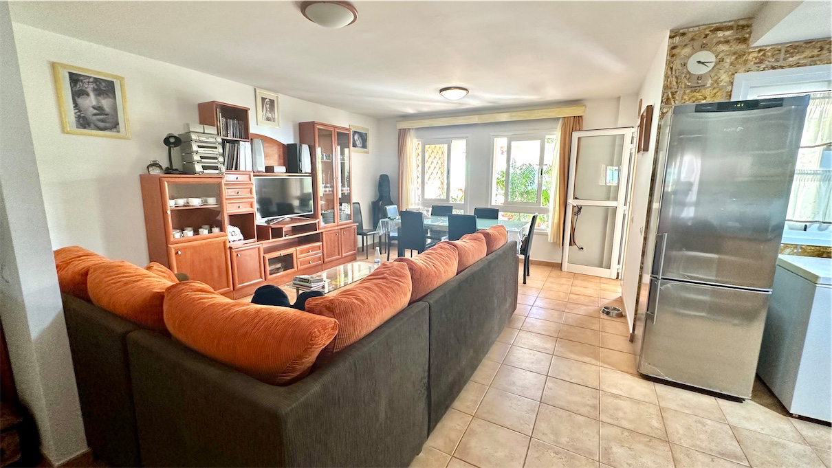 Situado cerca de los supermercados y a 3 minutos en coche de la calle principal y la playa.Cuenta con un amplio salón-comedor con cocina semi-abierta totalmente equipada con puertas que dan al patio con pérgola y amplio jardín con muchos árboles de frutatas y hortalizas, el huerto maduro permite a los propietarios a ser completamente autosuficientes en frutas y verduras durante todo el año.