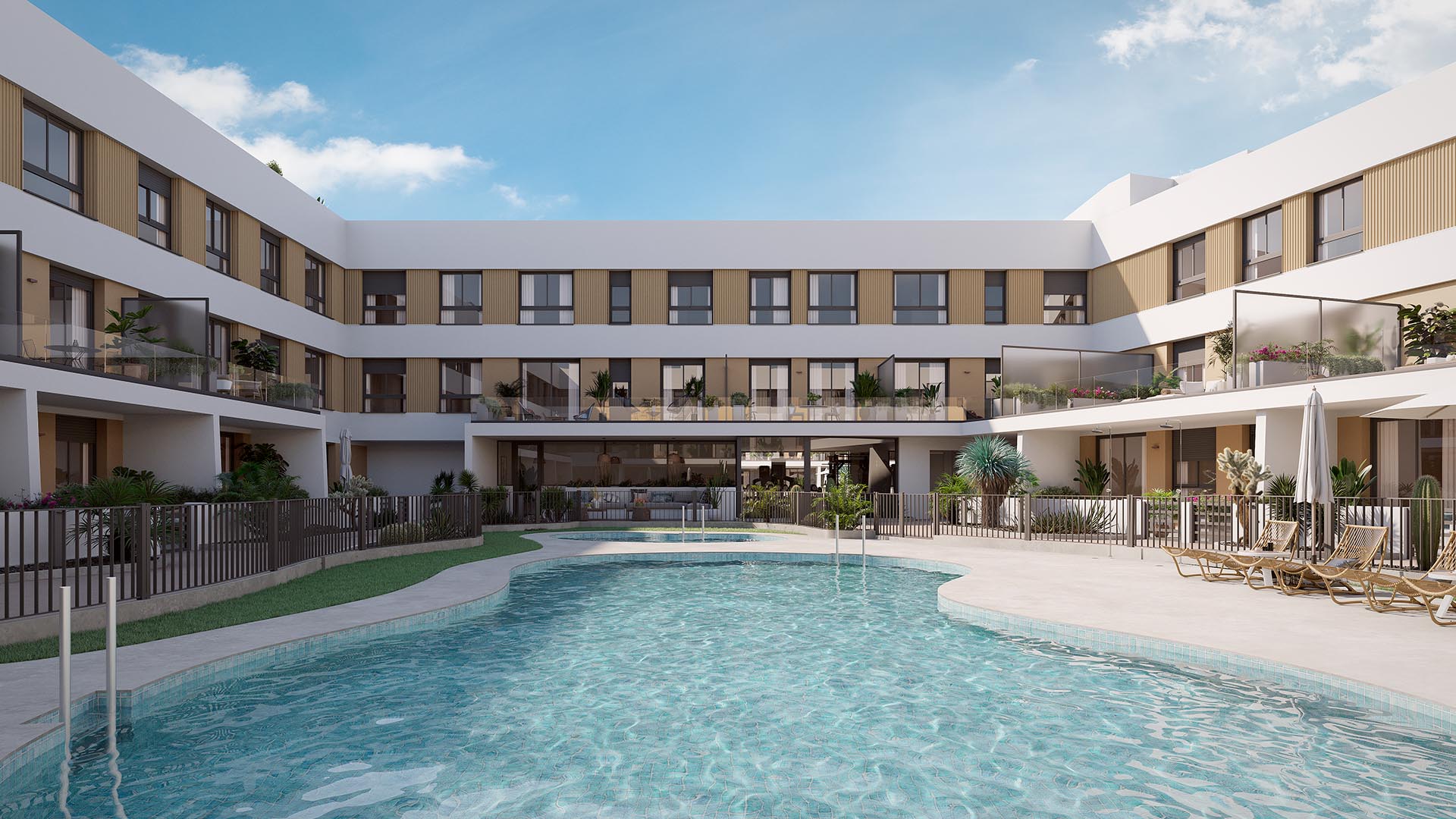 Cada vivienda dispone de amplios salones con cocina integrada, terrazas luminosas, jardines privados o áticos con vistas infinitas al océano, e incluye