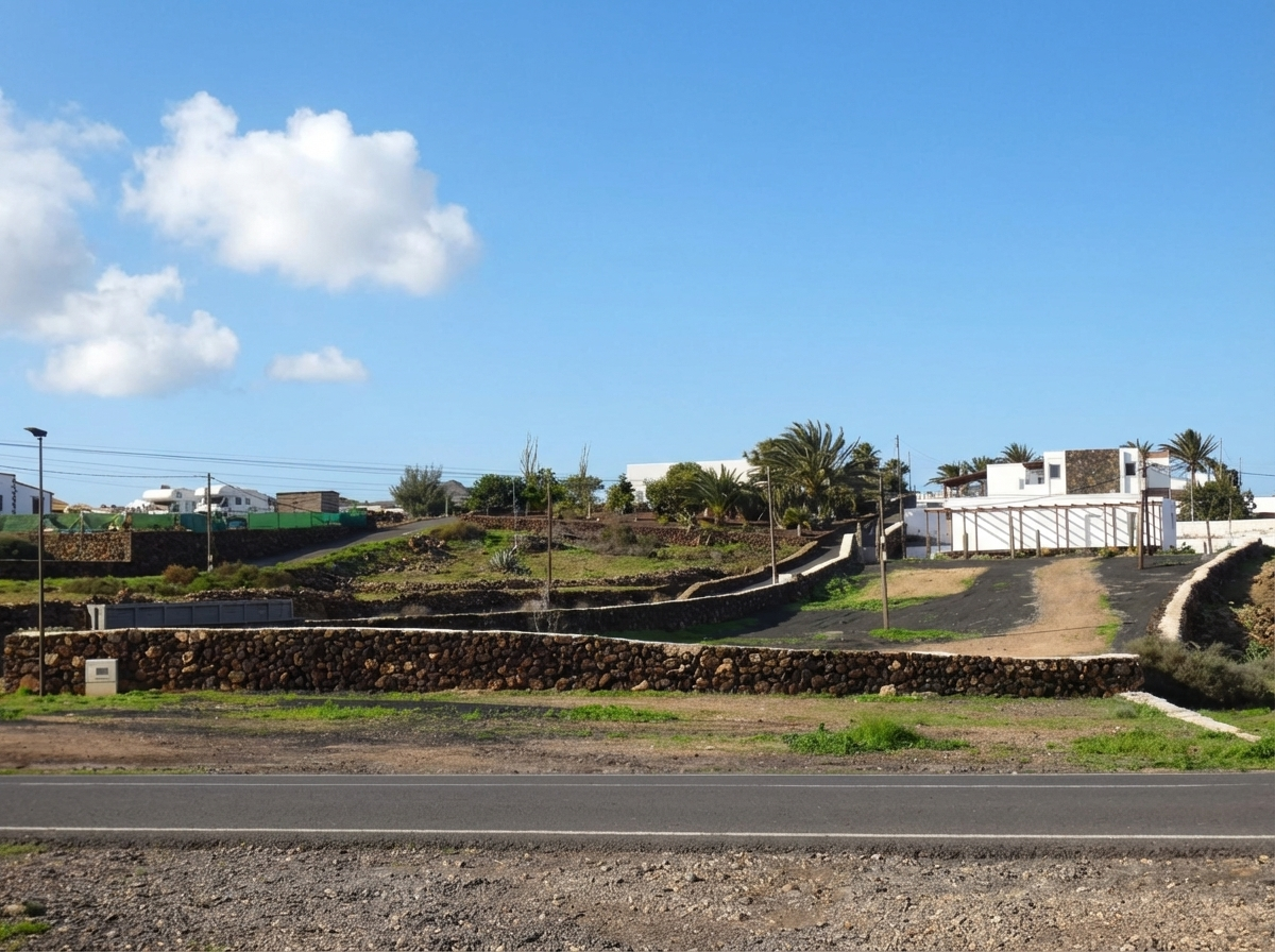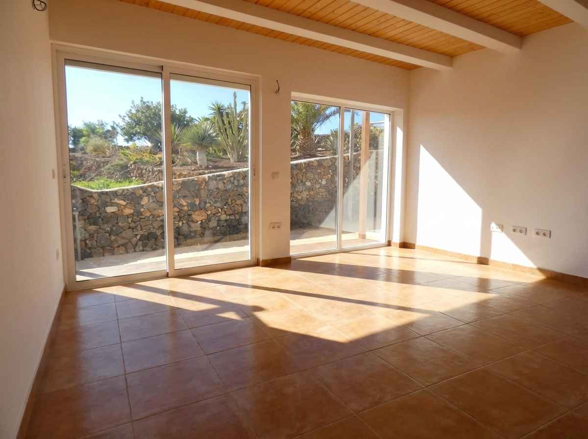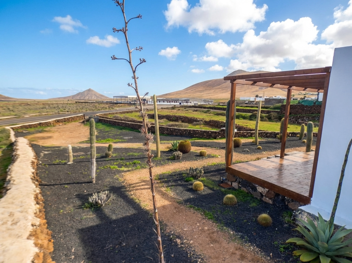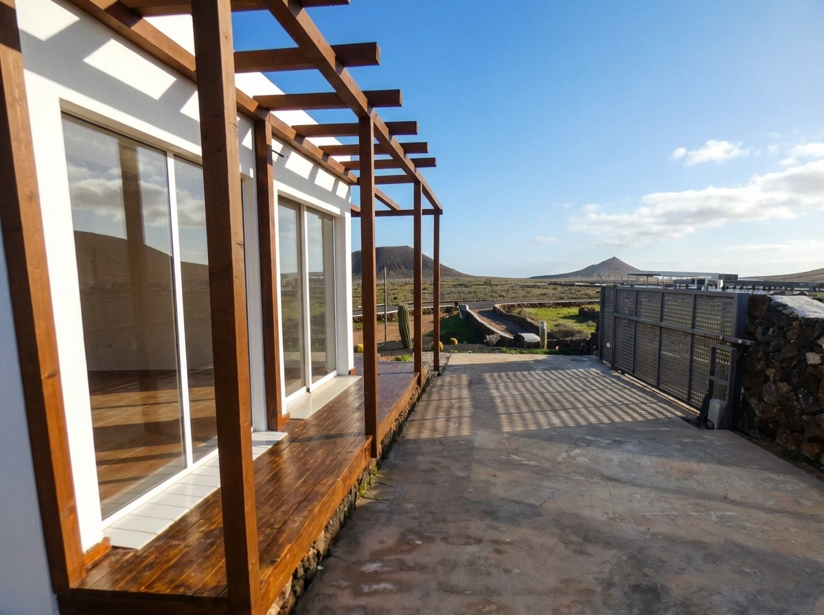 Vivienda unifamiliar situada en Villaverde, en un entorno tranquilo del interior de Fuerteventura, a pocos minutos de Corralejo y de las playas del norte de la isla. La propiedad se asienta sobre una parcela de 1.706 m² con vistas despejadas al paisaje volcánico de la zona.