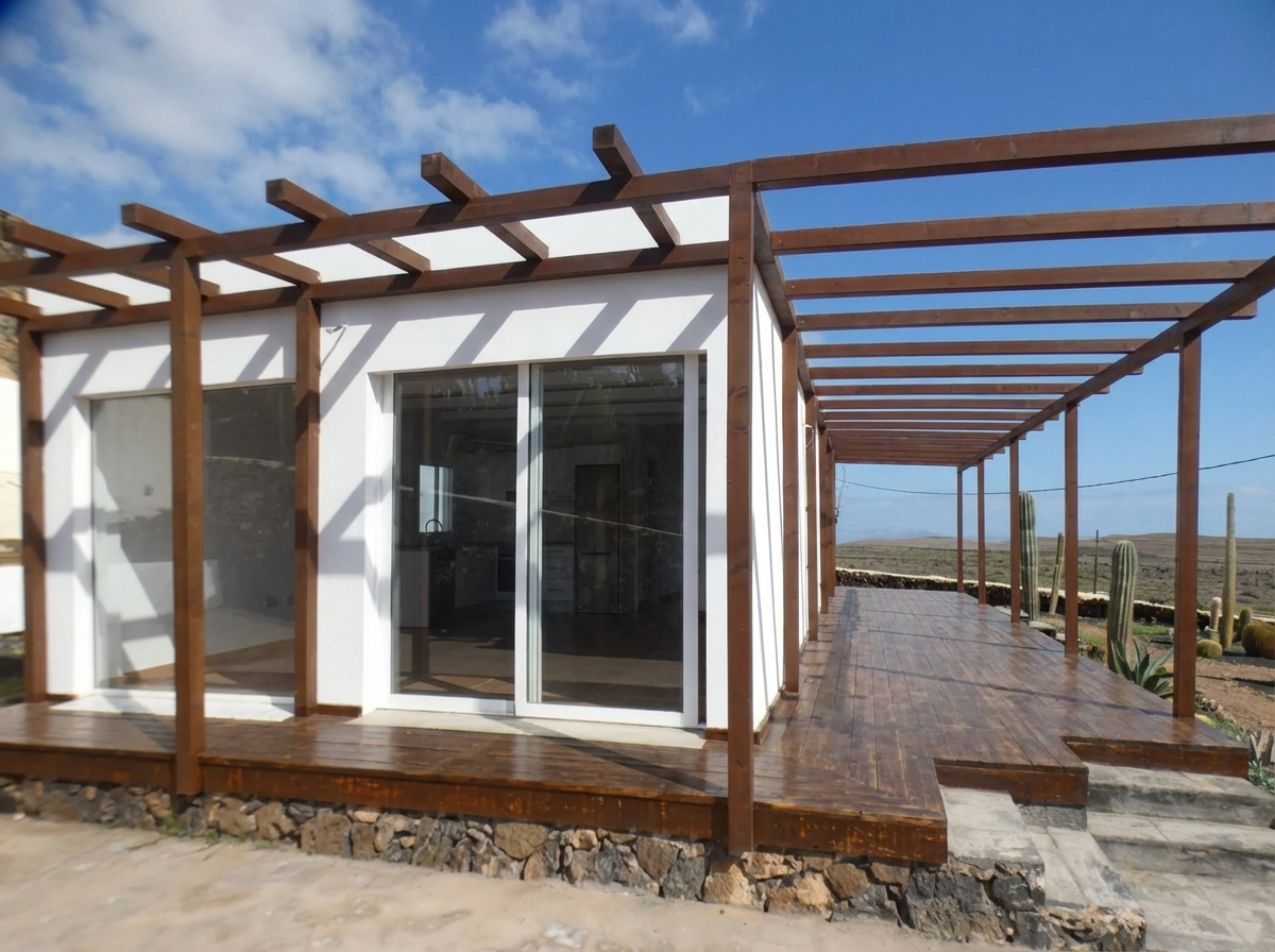 - Terraza cubierta con pérgola de madera